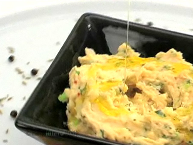 Рецепт ливанской кухни.На 4 порции:чеснок — 2 зубчика;горох — 250 гр;лук — 1 штука;лук порей — 2 стебля;петрушка — 1 пучок;кориандр — 1 пучок;перец чили, тмин, черный перец, соль, оливковое масло.